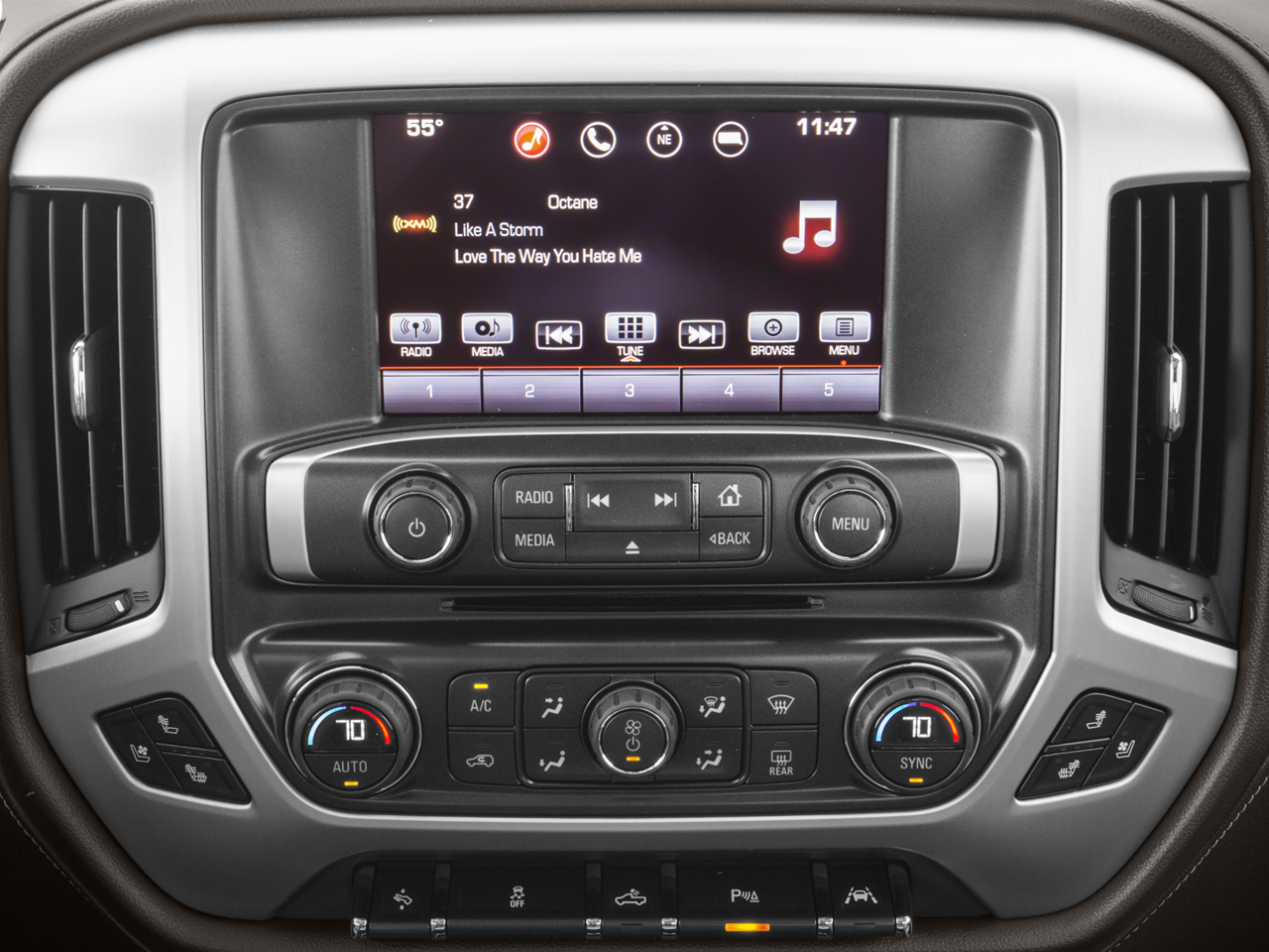 Enhanced Driver Alert Package (Forward Collision Alert, IntelliBeam Automatic High Beam On/Off Headlight, Lane Keep Assist, Low Speed Forward Automatic Braking, and Ultrasonic Front & Rear Park Assist), Preferred Equipment Group 4SA (110-Volt AC Power Outlet, 150 Amp Alternator, 1st & 2nd Row Color-Keyed Carpeted Floor Mats, 4.2 Diagonal Color Display Driver Info Center, Auto-Dimming Inside Rear-View Mirror, Auxiliary External Transmission Oil Cooler, Chrome Bodyside Moldings, Chrome Door Handles, Chrome Mirror Caps, Color-Keyed Carpeting, Deep-Tinted Glass, Driver & Front Passenger Illuminated Vanity Mirrors, Dual-Zone Automatic Climate Control, Electric Rear-Window Defogger, EZ Lift & Lower Tailgate, GMC 4G LTE, GMC Connected Access, Heavy-Duty Rear Locking Differential, Leather Wrapped Steering Wheel w/Cruise Controls, LED Cargo Box Lighting, LED Tailamps w/Signature, Manual Tilt/Telescoping Steering Column, OnStar & GMC Connected Services Capable, Power Adjustable Pedals, Power Folding & Adjustable Heated Outside Mirrors, Power Windows w/Driver Express Up & Down, Rear 60/40 Folding Bench Seat (Folds Up), Rear Wheelhouse Liners, Remote Keyless Entry, Remote Locking Tailgate, Remote Vehicle Starter System, Single Slot CD/MP3 Player, Steering Wheel Audio Controls, Theft Deterrent System (Unauthorized Entry), Thin Profile LED Fog Lamps, and Universal Home Remote), SLT Crew Cab Premium Plus Package (10-Way Power Driver's Seat Adjuster, 20 x 9 Chrome Clad Aluminum Wheels, 6-Speaker Audio System, 6 Rectangular Chromed Tubular Assist Steps, Bose Speaker System, Floor Mounted Console, Front Full Feature Power Reclining Bucket Seats, HD Radio, Heated & Ventilated Front Bucket Seats, Heated Driver & Front Passenger Seats, High-Performance LED Headlamps, Integrated Trailer Brake Controller, Leather Wrapped Heated Steering Wheel, Power Sliding Rear Window w/Defogger, Radio: AM/FM/GMC Infotainment & Navigation, SiriusXM Satellite Radio, Spray-On Pickup Box Bed Liner w/GMC Logo, and Wireless Charging), Trailering Equipment, 8-Speed Automatic with Overdrive, Jet Black Leather, 4-Wheel Disc Brakes, 40/20/40 Front Split Bench Seat, 6 Speakers, ABS brakes, Adjustable pedals, Air Conditioning, Alloy wheels, AM/FM radio: SiriusXM, Auto-dimming door mirrors, Auto-dimming Rear-View mirror, Automatic temperature control, Bodyside moldings, Brake assist, Bumpers: chrome, CD player, Compass, Cruise Control, Delay-off headlights, Driver door bin, Driver vanity mirror, Dual front impact airbags, Dual front side impact airbags, Electronic Stability Control, Front anti-roll bar, Front Center Armrest w/Storage, Front dual zone A/C, Front fog lights, Front reading lights, Front wheel independent suspension, Fully automatic headlights, Heated door mirrors, Heated front seats, Heavy Duty Suspension, High-Intensity Discharge Headlights, Illuminated entry, Leather Appointed Seat Trim, Low tire pressure warning, Memory seat, Occupant sensing airbag, Outside temperature display, Overhead airbag, Overhead console, Panic alarm, Passenger door bin, Passenger vanity mirror, Power door mirrors, Power driver seat, Power passenger seat, Power steering, Power windows, Premium audio system: GMC Infotainment System, Radio data system, Radio: AM/FM/GMC Infotainment System, Rear reading lights, Rear seat center armrest, Rear step bumper, Rear View Camera, Rear window defroster, Remote keyless entry, Security system, Speed-sensing steering, Split folding rear seat, Steering wheel mounted audio controls, Tachometer, Telescoping steering wheel, Tilt steering wheel, Traction control, Trip computer, Turn signal indicator mirrors, Universal Garage Door Opener, Variably intermittent wipers, Voltmeter, Wheel Locks (Set of 4) (LPO), and Wheels: 18 x 8.5 Polished Aluminum. 8-Speed Automatic with Overdrive, Jet Black Leather, 10-Way Power Driver's Seat Adjuster, 110-Volt AC Power Outlet, 150 Amp Alternator, 1st & 2nd Row Color-Keyed